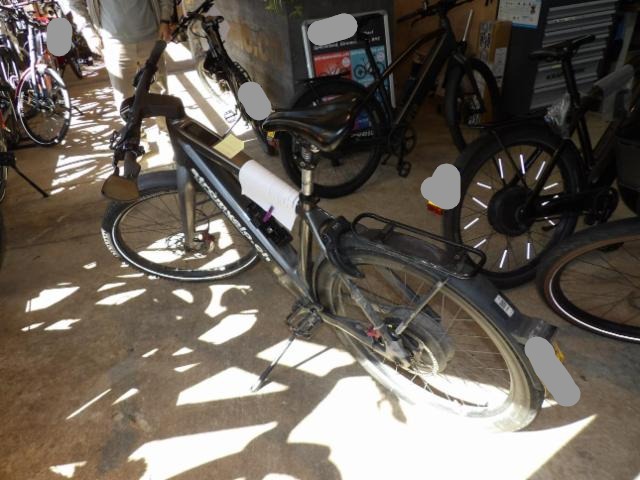 Vorderrad beschädigt. Gabel beschädigt. Gabel Risiko. Lenker verbogen.