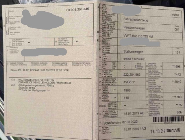 Fahrzeugdokumente vorhanden.
