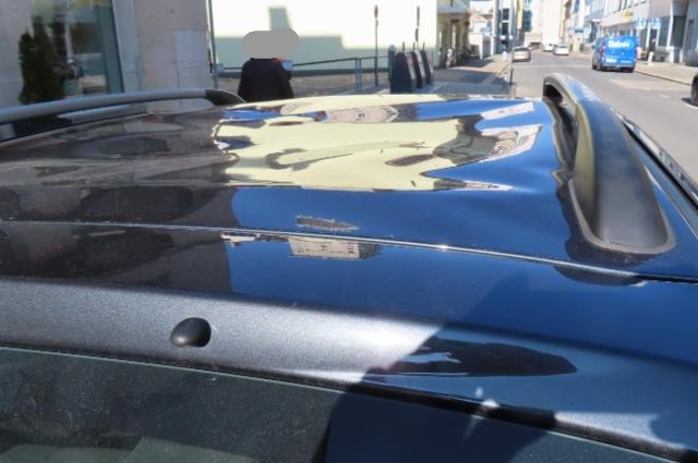 Dach eingedrückt. Dach ist vorne rechts eingedrückt. Dach ist vorne links eingedrückt. Dach ist hinten rechts eingedrückt. Dach ist hinten links eingedrückt.