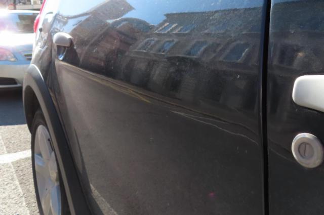 Rechte Seite beschädigt. Schweller rechts ist eingedrückt. Tür hinten rechts ist eingedrückt.