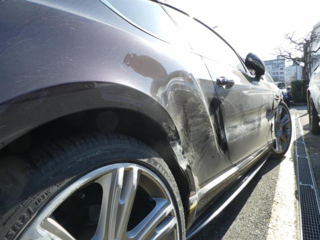 Rechte Seite beschädigt. Anstoss rechts im Bereich der A-Säule. Anstoss rechts im Bereich der B-Säule. Anstoss rechts im Bereich der C-Säule. Schweller rechts ist eingedrückt. Tür vorne rechts ist eingedrückt.