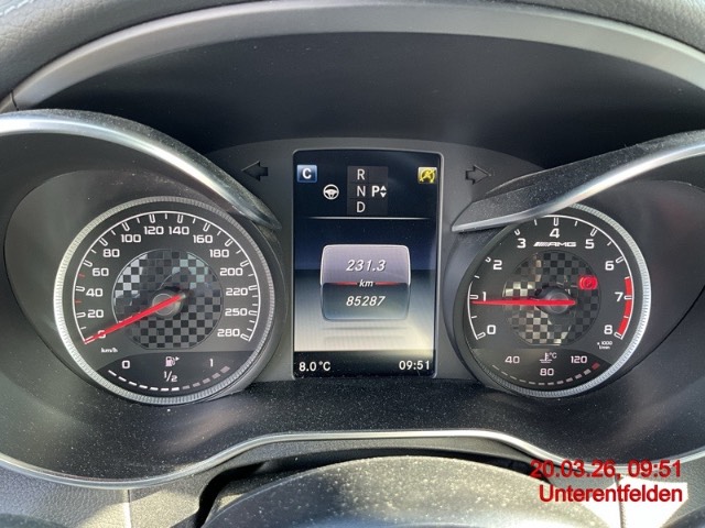 AMG Abrisskante, AMG Front- und Heckschürze, AMG Kombiinstrument, AMG Leichtmetallräder im 5-Speichen- Design 18J, schwarz lackiert und glanzgedreht, AMG Sportpedalanlage, Airbag: Airbag Beifahrer deaktivierbar, Airbag: Airbag Fahrer und Beifahrer, Airbag: Automatische Beifahrerairbag-Abschaltung, Airbag: Knie-Airbag für Fahrer, Airbag: Seiten- und Beckenairbag (Pelvisbag) für Fahrer und Beifahrer, Airbag: Window-Kopfairbags für Fahrer, Beifahrer und Fondraumpassagiere, Allradantrieb permanent, Assist: COLLISION PREVENTION ASSIST PLUS, Assist: Notrufsystem, Assist: Tempomat mit variabler Geschwindigkeitsbegrenzung SPEEDTRONIC, Assist:Reifendruck-Kontrollanzeige, Aussenspiegel in schwarz, Bremsscheiben vorne gelocht, DYNAMIC SELECT Schalter, Dekor: Dachhimmel schwarz, Dekor: Instrumententafel in Ledernachbildung ARTICO, Dekor:Kontrastnähte, Dekor:Zierelemente in Klavierlack-Optik schwarz / Aluminium, Dekor:designo Sicherheitsgurte, farbig, Diamantgrill, Fahrwerk:AMG RIDE CONTROL Sportfahrwerk, Fahrwerk:AMG Sport-Parameterlenkung, Getriebe:9-Stufen-Automat sequentiell, Heckscheibenheizung, Katalysator geregelt, Klima: Klimatisierungsautomatik THERMATIC mit 2-Klimazonen, Kommunikationsmodul, Kraftstofftank 66 Liter, Lackierung: Uni-Lackierung, Lenkrad:Multifunktions-Sportlenkrad in Leder,unten abgeflacht, Licht: Innenraumlicht-Paket, Licht: LED High Performance-Scheinwerfer, Licht: Nebelschlussleuchte, Media:Audio 20 USB Multimediasystem, 17,78cm- Farbdisplay, Doppeltuner, 2 USB, zentra- les Bedienelement, Bluetooth, SD-Karten- anschluss, Paket: AMG Styling-Paket, Polster:Polsterung Ledernachbildung ARTICO / Microfaser DINAMICA, Sitze:Gurtbringer elektrisch vorne, Sport-Abgasanlage mit zwei Endrohrblenden, Sportbremsanlage, Verdeck schwarz, Wegfahrsperre elektronisch