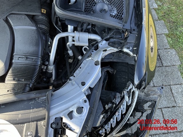 Front: beide Kotflügel, Radhausschale vorne, Stossfänger, Schliessteil Stossfänger, Motorhaube, Motorhauben-Scharniere, Scheinwerfer links, Blende, Lüftungsgitter, Pralldämpfer, Prallträger, Sensor Fußgänger Erkennung, Schlossträger, Parksensor, Längsträger oben, Federbeinaufnahme, Klimaleitung, Radaufhängung vorne links, Lenkung deformiert/gebrochen/gerissen - AUFZÄHLUNG NICHT ABSCHLIESSEND / Vorbestandene Schäden: Gebrauchsspuren