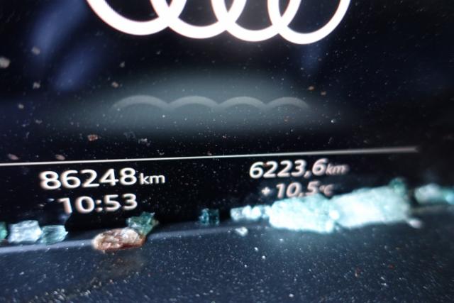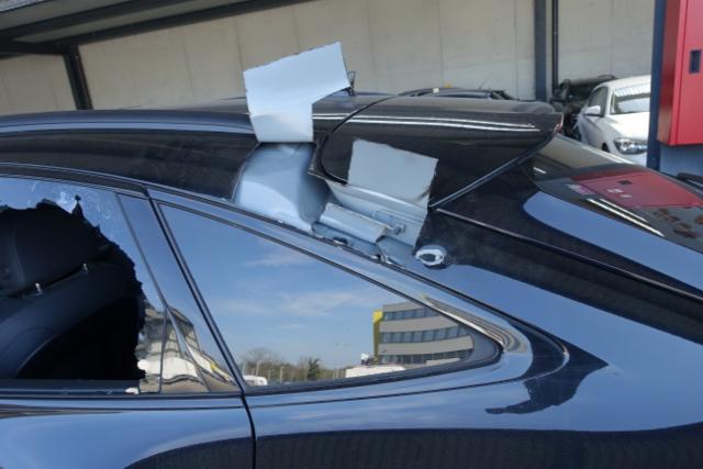 Motor läuft nicht an, Batterie entladen,Fahrzeug ist ringsum stark beschädigt. Blutspritzer im Fahrzeuginnenraum.
