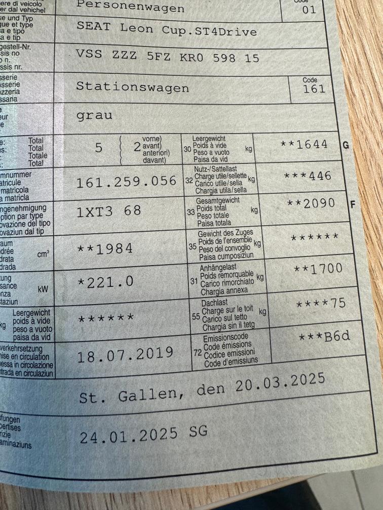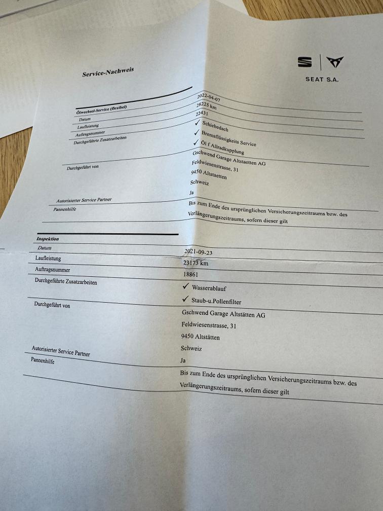Verkauf ab Platz, es wurde kein Werkstatttest durch uns durchgeführt, Verkauf unter Ausschluss jeglicher Haftung für sichtbare sowie verborgene Mängel. Das Risiko liegt vollumfänglich beim Käufer; Gewährleistung, Wandelung und Minderung sind wegbedungen. Nachverhandlungen sind nach dem Zuschlag ausgeschlossen, auch wenn nicht deklarierte Mängel zum Vorschein kommen sollten -frisch ab Service S-Räder sind mit Originalfelgen. Reifen dort noch ca. 5.5-6mm FZ fährt tadellos und es leuchten keine Fehlerlampen AHK wurde nachträglich eingebaut, ist aber eingetragen Top Ausstattung: Navi, Rückfahrkamera, AHK, Klima, Frontbereich/ Motorhaube einige Steinschläge, siehe Fotos einige Kratzer/ Gebrauchsspuren am Lack, vo. diverse Eingetrocknene Rückstände vom Fahren Kratzer Stossstange hinten, teilweise war Hund im FZ gemäss Kundenaussage, sind aber Kaum Hundehaare ersichtlich