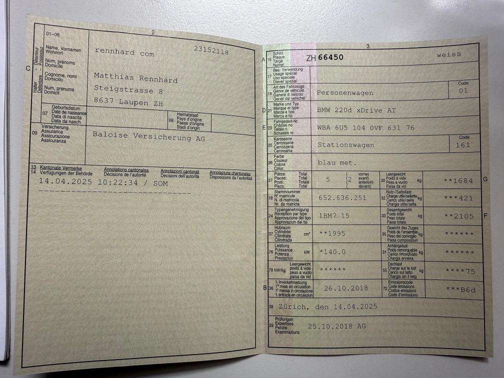 kein Werkstatttest durchgeführt, Normale Gebrauchsspuren der Laufleistung und dem Alter entsprechend siehe Fotos. Servicegepflegt bei BMW, Winterräder und Sommerräder. MIL leuchtet ohne bemerkbare Einschränkungen fahrbar. Hinweis zur Fahrzeugübergabe und Haftungsausschluss Wir führen keine umfassenden Prüfungen oder Kontrollen sämtlicher Fahrzeugfunktionen durch. Offensichtliche Mängel werden, soweit erkennbar, benannt, jedoch unterziehen wir das Fahrzeug keinem detaillierten Werkstatttest. Daher übernehmen wir keine Haftung für sichtbare oder unsichtbare Mängel. Zur Vermeidung von Missverständnissen kann das Fahrzeug nach vorheriger Terminvereinbarung besichtigt, getestet und probegefahren werden. Nachverhandlungen, jegliche Garantie, Wandelung und Minderung werden ausgeschlossen.
