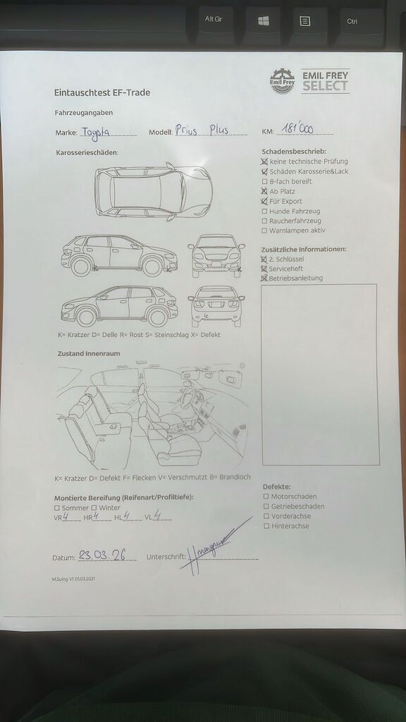 Keine technische Prüfung (Werkstatttest) vorgenommen Diverse Schäden an Karosserie/Lack. Fahrzeug ab Platz, ohne Garantie und Aufbereitung. Fahrzeug ist für Export Motor Getriebe Vorderachse Hinterachse Airbags ausgelöst: 0 unbekannt ( Abfallcode 16.01.04ak )