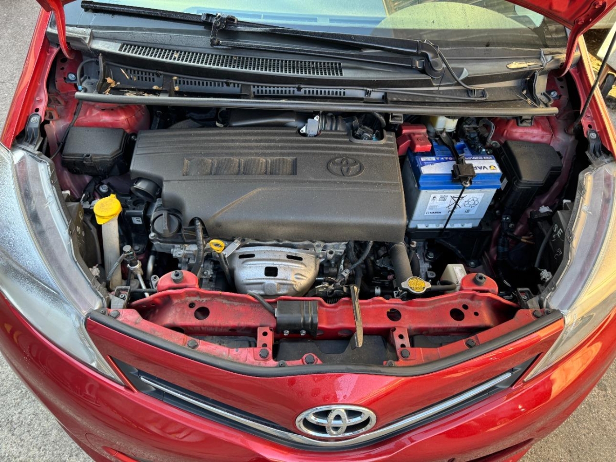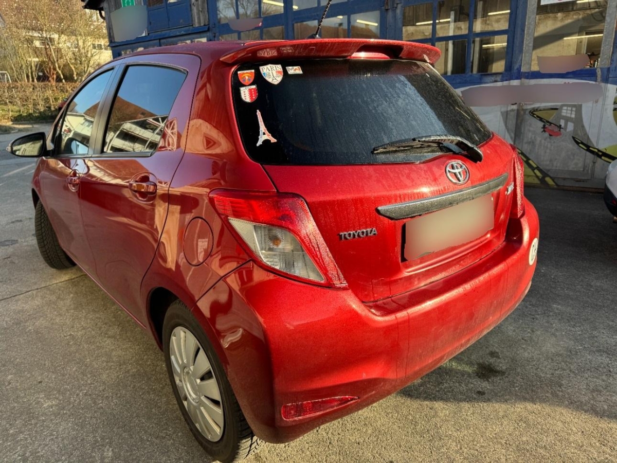 Türgriffe aussen in Wagenfarbe, Lichtwarnsummer, Bremsassistent (BAS), Tankdeckel-Entriegelung von innen, Media: Bluetooth-Schnittstelle, Lackierung: Uni-Lackierung, Airbag: Airbag Fahrer und Beifahrer, ISOFIX Kindersitzvorrichtung, Media: Multimedia Audiosystem Toyota Touch, Make up-Spiegel links, Licht: Abblendlichtausschaltverzögerung 'Follow me home', Licht: Drittes Bremslicht, Kopfstützen hinten, Ablagen in den Türen, Stossstangen und Aussenspiegel in Wagenfarbe, Sitze mit Schleudertrauma-Schutzsystem, Dachspoiler in Wagenfarbe, Innenspiegel automatisch abblendbar, Licht: Nebelscheinwerfer, Räder: 4 Leichtmetallfelgen 16J mit Pneu, Make up-Spiegel rechts, Sitze: Beifahrersitz höhenverstellbar, Klima: Klimaanlage, Digital Uhr, Elektrische Fensterheber vorne, Türgriffe innen verchromt, Wegfahrsperre elektronisch, Farbmonitor, Blinker in Aussenspiegel, Digitaler Radioempfang (DAB) Vorbereitung, Cupholder vorne und hinten, Multifunktionsanzeige, Licht: LED Heckleuchten, Sitze: Rücksitzlehne geteilt abklappbar, Lenkrad: Multifunktionslenkrad mit Radiobedienung, Polster: Stoff-Ausstattung, Haltegriffe 2 vorne und 2 hinten, Airbag: Window-Kopfairbags, Sitze: Fahrersitz höhenverstellbar, Assist: Rückfahrkamera, Aussentemperaturanzeige, Wärmeschutzverglasung, Antiblockiersystem (ABS), Lenkrad: Lenkrad längs- und höhenverstellbar, Airbag: Airbag Beifahrer deaktivierbar, 12-Volt-Steckdose vorne, Kartentaschen an den Rückenlehnen, Airbag: Knie-Airbag für Fahrer, Lederhandbremshebel, Radiovorbereitung, Antenne, Entstörung und 8 LS, Armlehne für Fahrersitz, Drehzahlmesser, Aussenspiegel rechts und links beheizbar und elektrisch verstellbar, Katalysator geregelt, Tageskilometerzähler, Servolenkung, Laderaumabdeckung, Airbag: Seitenairbags, Media: USB+AUX-Anschluss, Getriebe: 7-Stufen-Automat CVT sequentiell, Sportlenkrad und Schalthebelgriff in, Abgedunkelte Seiten- und Heckscheibe, Räder: Reifenreparatur-Set (Tire Fit), Pollenfilter (Staubfilter), Leseleuchten vorne, Heckscheiben-Wisch-/Waschanlage, Heckscheibenheizung, Aussenspiegel und Türgriffe in Wagenfarbe, Stabilitäts- und Traktionskontrolle (VSC und TRC), Zentralverriegelung mit Fernbedienung, Licht: Nebelschlussleuchte, Premium-Audiosystem