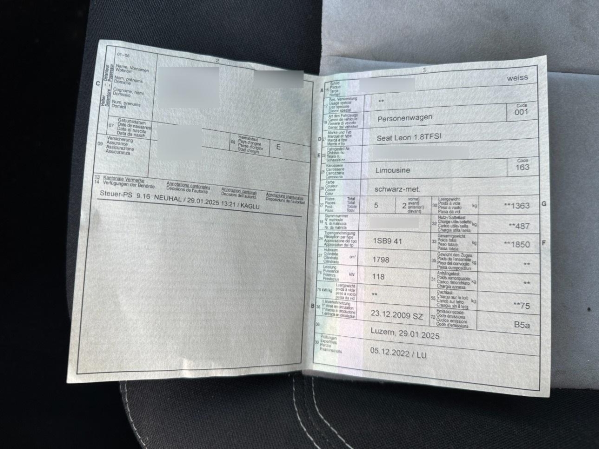 Licht: Tagfahrlicht, Cupholder vorne und hinten, Wegfahrsperre elektronisch, Katalysator geregelt, Airbag: Fahrer und Beifahrer Airbag, Leuchtweitenregulierung von innen, Heckscheiben-Wisch-Waschanlage mit Intervall, Stossstangen, Aussenspiegel und Türgriff in Wagenfarbe, Aussenspiegel rechts und links beheizt, elektrisch verstell-/ und einklappbar, Airbag: Beifahrerairbag deaktivierbar, USB-Anschluss, Sitze: Rücksitzlehne geteilt abklappbar 1/3 - 2/3, Media: AUX-Anschluss, Sitze: Vordersitze höhenverstellbar, Aussentemperaturanzeige, Lenkrad: Ledermultifunktionslenkrad, Räder: Notrad, Polster: Stoff-Ausstattung, 12-Volt-Steckdose vorne, ABS und TCS, Beide Make up-Spiegel beleuchtet, Wärmeschutzverglasung, Servolenkung geschwindigkeitsabhängig, Klima: 2-Zonen-Klimaautomatik, Nebelscheinwerfer mit Abbiegelicht, Lichtwarnsummer, Elektrische Fensterheber vorne und hinten mit Komfortbetätigung und Einklemmschutz, Airbag: Seitenairbag für Fahrer und Beifahrer, Airbag: Window-Kopfairbags, Lenkrad längs- und höhenverstellbar, Assist: Tempomat, Schalthebelknauf in Leder, Handschuhfach Beleuchtet, Leseleuchten hinten, Gurtstraffer vorne, Zentralverriegelung mit Fernbedienung, Media: Lautsprecher 6, Leseleuchten vorne, Radiovorbereitung, Dachantenne und, Getriebe: 6-Gang-Getriebe, Media: Radio/CD-Player mit MP3, Licht: Coming-home-Funktion, Seitenaufprall-Schutzsystem, Bordcomputer, Schublade unter Fahrersitz, SEAT Garantie: Garantie 2 Jahre ohne Kilometerbe-grenzung (ab 1. Inv.), Gurte Höhenverstellbar vorne, Sitze: Kreuzstützen für Vordersitze verstellbar, ISOFIX Kindersitzvorrichtung, Abgedunkelte Seiten- und Heckscheibe, Fahrwerk: Sportfahrwerk, Räder: 4 Leichtmetallfelgen 17J mit Pneu, Sitze: Sportsitze vorne