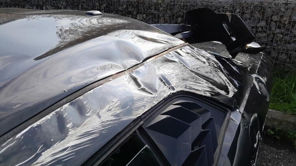 Pare-chocs AV + renfort Face AV complète + radiateur et agrégats moteur Ailes AV + phares Capot moteur + pare-brise et montants Toit + lunette AR, coffre et ailes AR Portes AV + AR gauche et droite Roues AV + AR + trains roulants Airbags + ceintures déclenchés Autres dommages voir photos, réserve non-démontage et sur fonctionnement général. Pas de document, 1 seule clé. Motor Getriebe Vorderachse Hinterachse Airbags ausgelöst: 2 unbekannt ( Abfallcode 16.01.04ak )