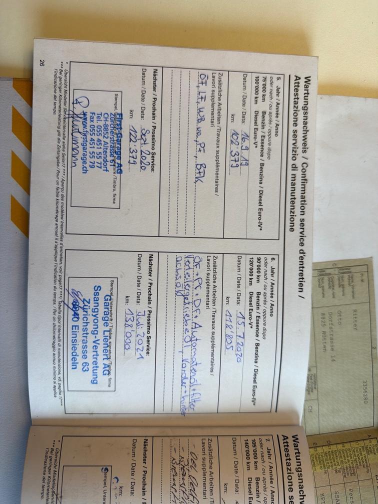 3. Sitzreihe fehlt Am Fahrzeug wurde kein Werkstatttest gemacht (Für sichtbare oder nicht sichtbare Mängel wird nicht gehaftet). Wir testen & kontrollieren nicht alle Funktionen des Fahrzeugs. Das Risiko liegt somit vollumfänglich beim Käufer. Ab Platz ohne Garantie, Wandelung und Minderung werden wegbedungen. Nach erteilte Zuschlag muss Fahrzeug innerhalb 4 Arbeitstage abgeholt und Bar bezahlt werden. Sonst wird Parkplatz CHF 30.- / Tag verrechnet Ab Service 15.03.2026