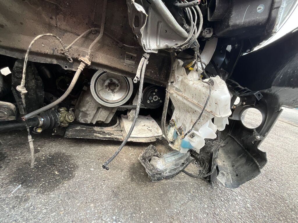 Schaden Seite rechts mit Beschädigung von Stossfänger, Kotflügel, kompletter Radaufhängung, Federbeinaufnahme, Frontscheibe, Türen, Dachrahmen, A-Säule sowie diverse Anbauteile. Motor Getriebe Vorderachse Hinterachse Airbags ausgelöst: 3 unbekannt ( Abfallcode 16.01.04ak )