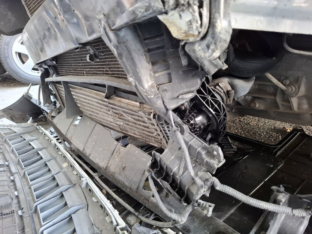 Dommage partie frontale: bloc avant fortement plié déformé embouti enfoncé décentré disloqué endommagé, capot moteur charnières et serrure de capot moteur ailes gauche et droite portes avant gauche et droite renfort de pare chocs longerons gauche et droit longeron supérieur gauche tourelle de suspension gauche pliés déformés emboutis enfoncés décentrés endommagés, enveloppe supports garnitures grilles et spoiler de pare chocs avant phares gauche et droit convoyeurs d'air radiateurs porte serrure ventilateurs de refroidissement pare brise cassés fissurés éclatés arrachés endommagés, airbags conducteur et passager ainsi que genoux déployés, ceintures de sécurité rétractées. Dommage flanc arrière droit: porte et aile pliées déformées endommagées. Motor Getriebe Vorderachse Hinterachse Airbags ausgelöst: 0 Ja ( Abfallcode 16.01.04ak )