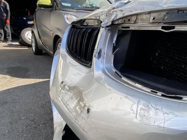 Front eingedrückt. Motorhaube eingedrückt. Frontblech/Maskenblech eingedrückt.