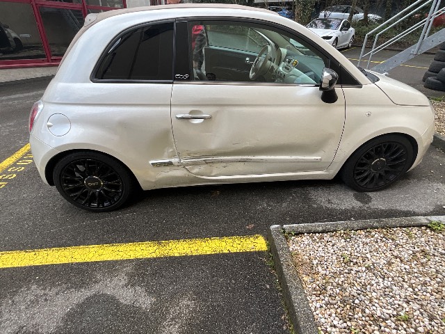 Chocs latéral droite : aile et porte à remplacer / Dommages préexistants: traces d'utilisation