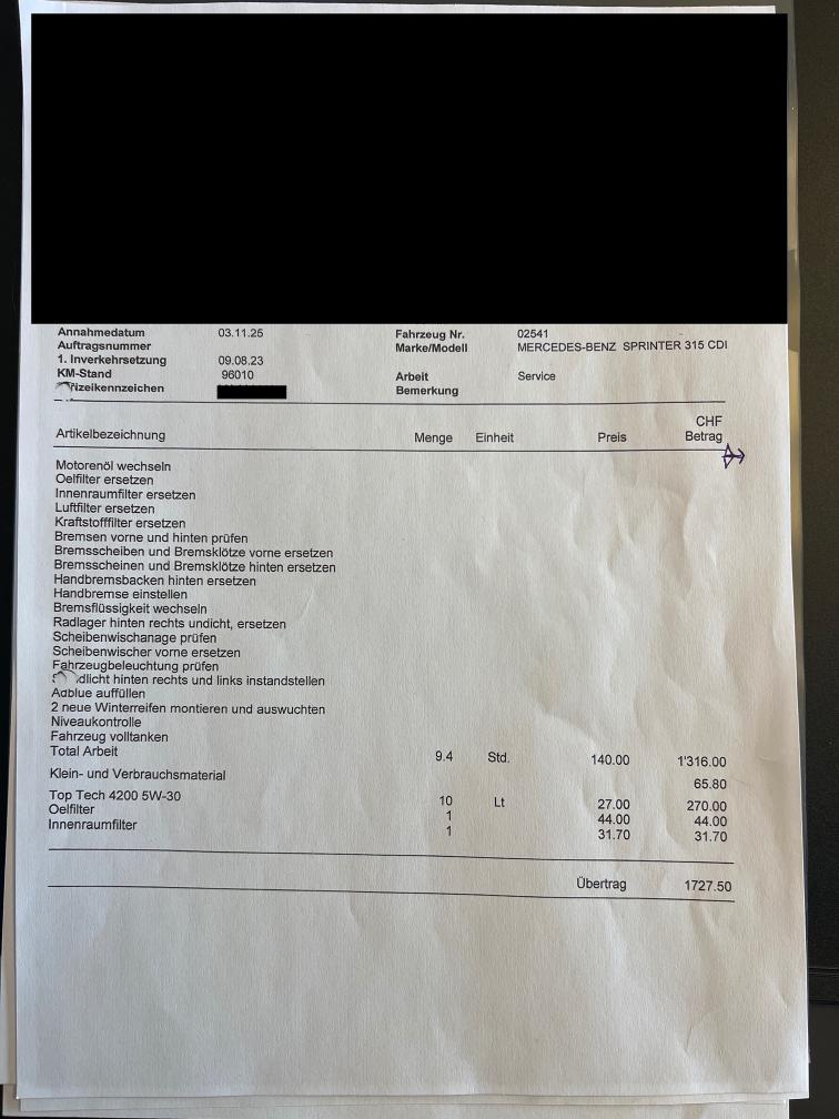 Fahrzeug hat diverse Gebrauchsspuren, auf der Haube sind keine Kratzer sondern Klebereste. Am Fahrzeug wurde Service und diverse Reparaturen gemacht im November 2025 bei 96010km. Siehe Foto von Rechnung Dachkante hinten Oben wurde mal wahrscheinlich angefahren, behindert Türöffnung nicht, nur Optischer Mangel. Siehe Fotos Verkauf ohne Garantie, ohne Inhalt, Wandelungen und Minderungen ausgeschlossen.
