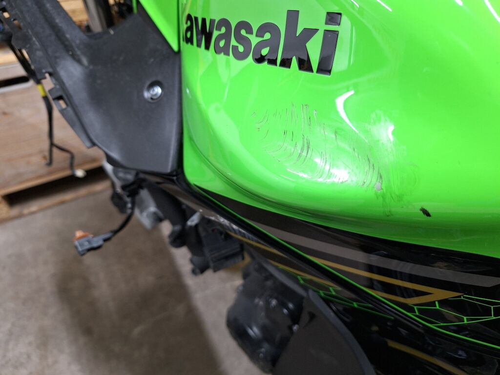 Avant et les 2 flancs fortement endommagés, cadre plié, réservoir et radiateur enfoncés Motor Getriebe Vorderachse Hinterachse Airbags ausgelöst: 0 unbekannt ( Abfallcode 16.01.04ak )