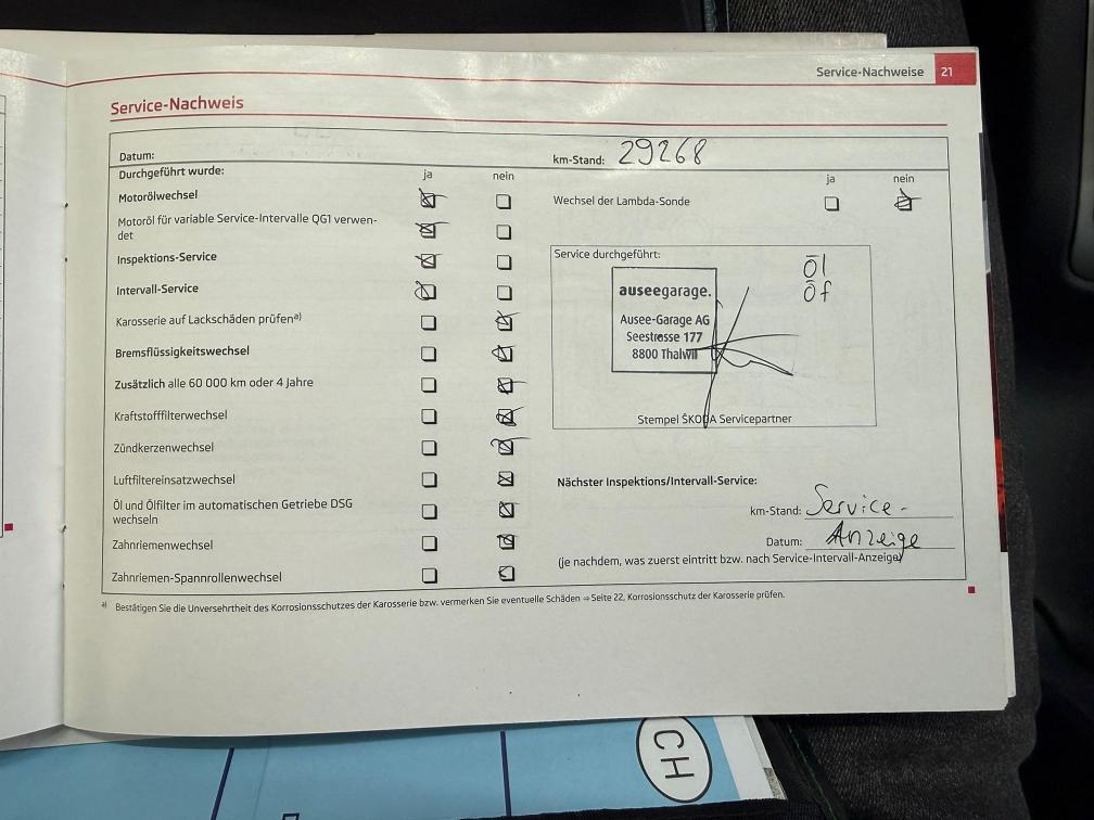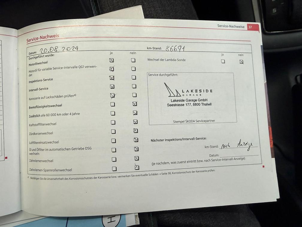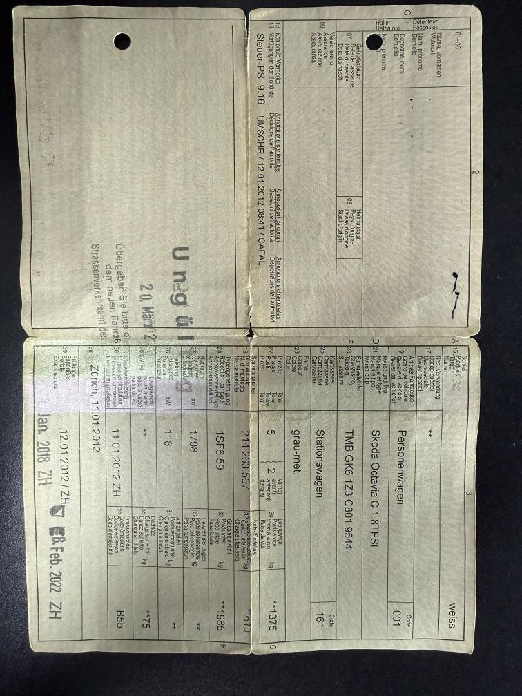 Fahrzeug aus 1 Hand. Beim letzten Service 08.2025 sind uns keine Technischen Mängel aufgefallen. Da das neue Fahrzeug erst kürzlich ausgeliefert wurde haben wir keinen erneuten Eintauschtest durchgeführt! Weitere oder neue Mängel sind somit nicht ausgeschlossen! Bei der kurzen Probefahrt ist uns nichts aufgefallen, Motor und Getriebe funktionieren einwandfrei. Gemäss Kunden hatte er zwischen den Jährlichen Services nie Öl nachgefüllt! Fahrzeug ist 8 Fach Alu Bereift, ebenso sind noch Skiträger gemäss Bilder mit dabei. Carrosserie und Lack haben gemäss Bilder teilweise Kratzer und Dellen. Die Fahrzeugbeschreibung erfolgt nach bestem Wissen und Gewissen, dennoch sind Fehler und Mängel nicht ausgeschlossen. Fahrzeugverkauf erfolgt ab Platz und ohne jegliche Gewährleistung, insbesondere Wandelung und Minderung sind ausgeschlossen!