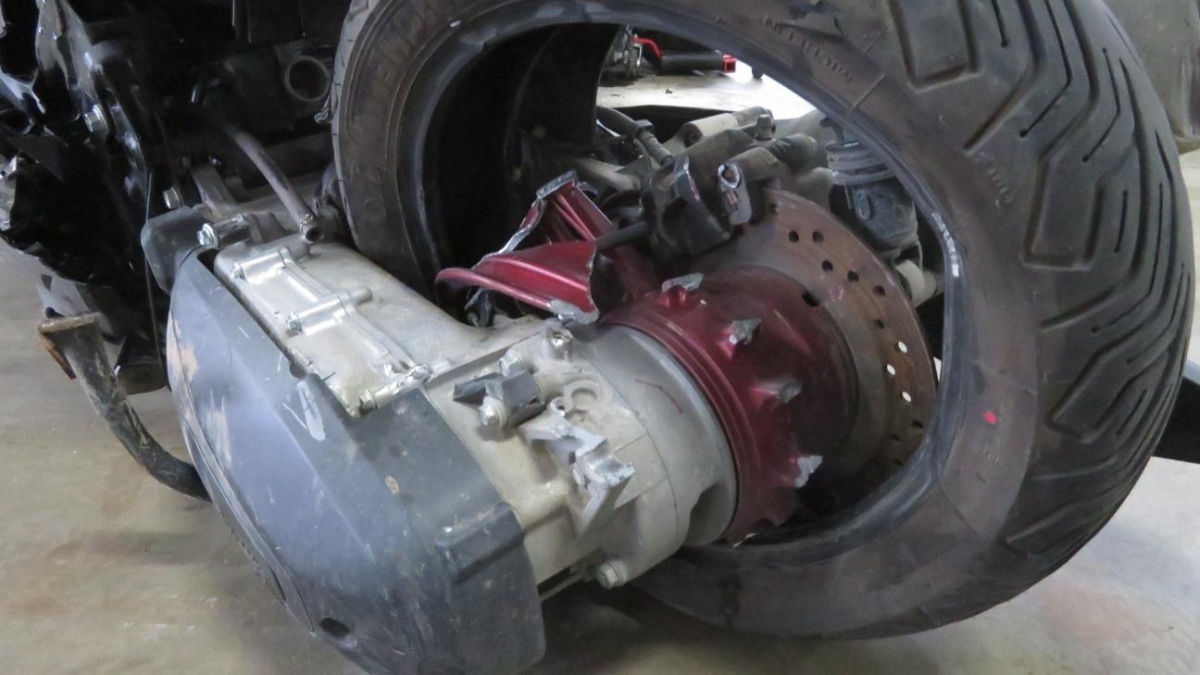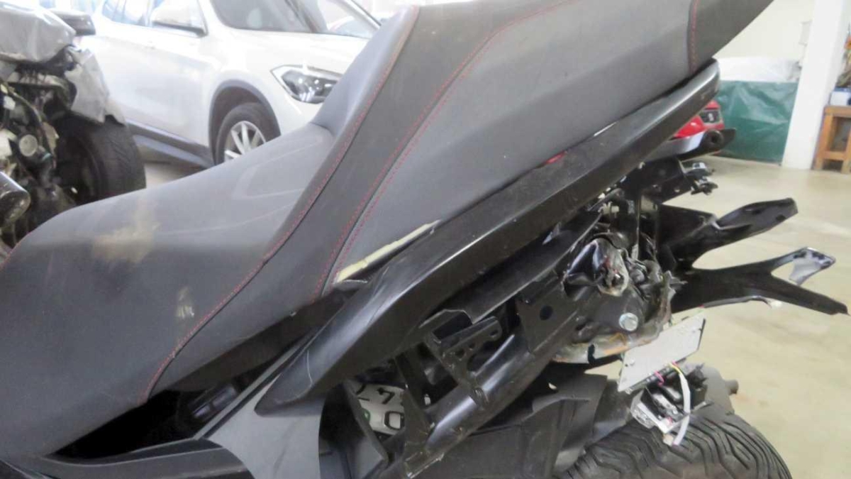 Antrieb, Heck, Motor, Rad hinten, Rahmen, Rücklicht, Rücklicht links, Rücklicht rechts, Schwinge, Sitz, Verschalungen links