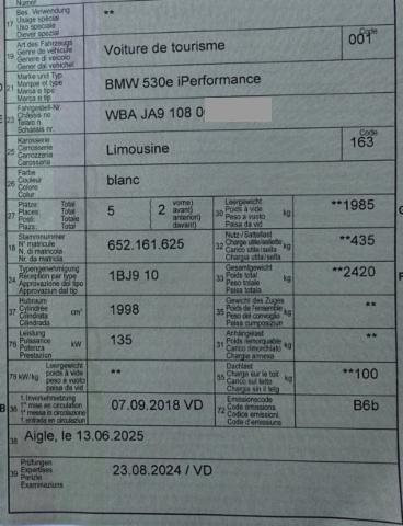 Fahrer und Beifahrer-Airbag Diebstahlwarnanlage Seitenairbag für Fahrer und Beifahrer Radio BMW Professional Sport-Lederlenkrad Reifendruck-Kontrollsystem RDC Innenspiegel automatisch abblendbar Durchladesystem Armauflage vorn Dynamische Stabilitäts-Control DSC Antiblockiersystem ABS Servotronic Kindersitzbefestigung Isofix CD-Laufwerk Velours-Fussmatten Regensensor und automatische Fahrlichtsicherung Uni-Lackierung Navigationssystem Business Kopfairbags vorne + hinten Park Distance Control PDC vorn und hinten Geschwindigkeitsregelung mit Bremsfunktion Digital audio DAB-Tuner Freisprecheinrichtung mit USB-Schnittstelle LED-Nebelscheinwerfer Keine Gewähr auf die Angaben der Serienausstattungen ConnectedDrive Services Hochvoltbatterie Ladekabel LED-Scheinwerfer BMW Service Plus 10 Jahre/ 100'000 km Teleservice Pack Swiss-Premium Aufmerksamkeitsassistent Standklimatisierung