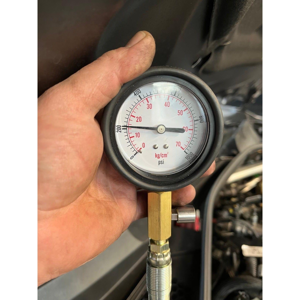 Starker Ölverlust, Öldeckel an der vorderen Seite des Motors ist weggefallen. Schlechte Kompression (max. 13bar). Metallspäne im Motoröl vorhanden. Motorschaden. Turbo muss mit ersetzt werden.