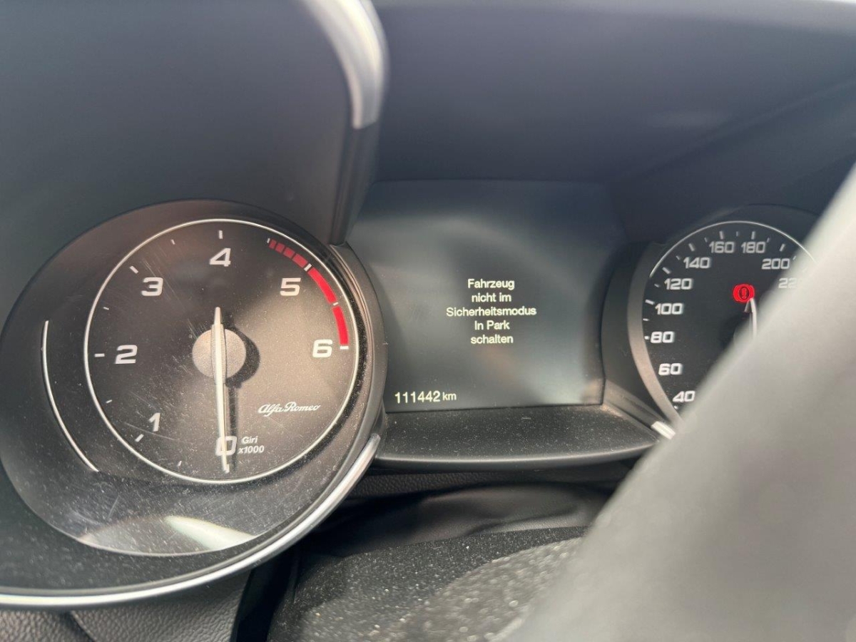 Bremssättel schwarz lackiert, Start/Stop-Funktion, 2-Zonen-Klimaautomatik, Einstiegsschienen verchromt, Pollenfilter (Staubfilter), Licht: Drittes Bremslicht, Bi-Xenon Lichtanlage, Info-Display, Alfa D.N.A System, Partikelfilter und Oxydationskatalysator, Ledersitze, LED-Tagfahrlicht, Getönte Scheiben, Lenkrad: Lenkrad beheizbar, Rücksitze geteilt abklappbar, Notrad, Forward Collision Warning, Bremsassistent (BAS), Sonnenblende rechts, Verstärkte Performance Bremsanlage, Auspuffanlage mit 2 Endrohren, Leuchtweitenregulierung von innen, Pedalerie mit Aluminiumauflage, Elektromechanische Parkbremse, USB+AUX-Anschluss, Notbremsassistent, Aussenspiegel elektrisch einklappbar, Beifahrersitz elektrisch verstellbar mit Memory, Reifen mit Notlaufeigenschaft, Scheibenwischer vorne mit Intervall, Licht: Nebelschlussleuchte, Antiblockiersystem (ABS), Integrated Brake System, Parksensoren hinten, Licht- und Regensensor, Reifendruckkontrollsystem, Allradantrieb permanent, Aussenspiegel automatisch abblendend, Reifendruck-Kontrollanzeige, Leichtmetallfelgen 18J VELOCE, Spurhalteassistent, Fahrersitz elektrisch verstellbar mit Memory, Heckscheibenheizung, Getriebe: 8-Stufen-Automat sequentiell, 3 Kopfstützen hinten, Airbag: Window-Kopfairbags, Airbag: Airbag Fahrer und Beifahrer, Gurtkontrolle, Lackierung: Uni-Lackierung, Seitenfenster-Zierleisten schwarz, Airbag: Seitenairbag für Fahrer und Beifahrer, Lenkrad mit Schaltwippen, 3-Punkt-Sicherheitsgurte auf allen Plätzen, Verchromtes Auspuffendrohr, Sport-Lederlenkrad, Teppichfussmatten, Vordersitze heizbar, Airbag: Airbag Beifahrer deaktivierbar, Alfa Connect 6,5''-Infotainmentsystem mit 8 Lautsprechern und Rotary Pad(inkl. DAB, MP3, Aux-In, Bluetooth), Audiofernbedienung am Lenkrad
