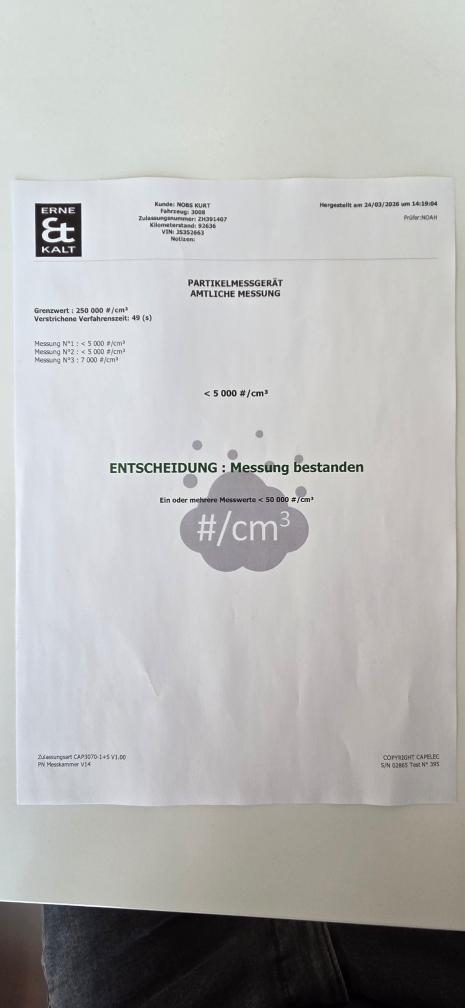 Dieselpartikelfiltertest wurde erfolgreich durchgeführt (Schriftlicher Ausdruck ist vorhanden).