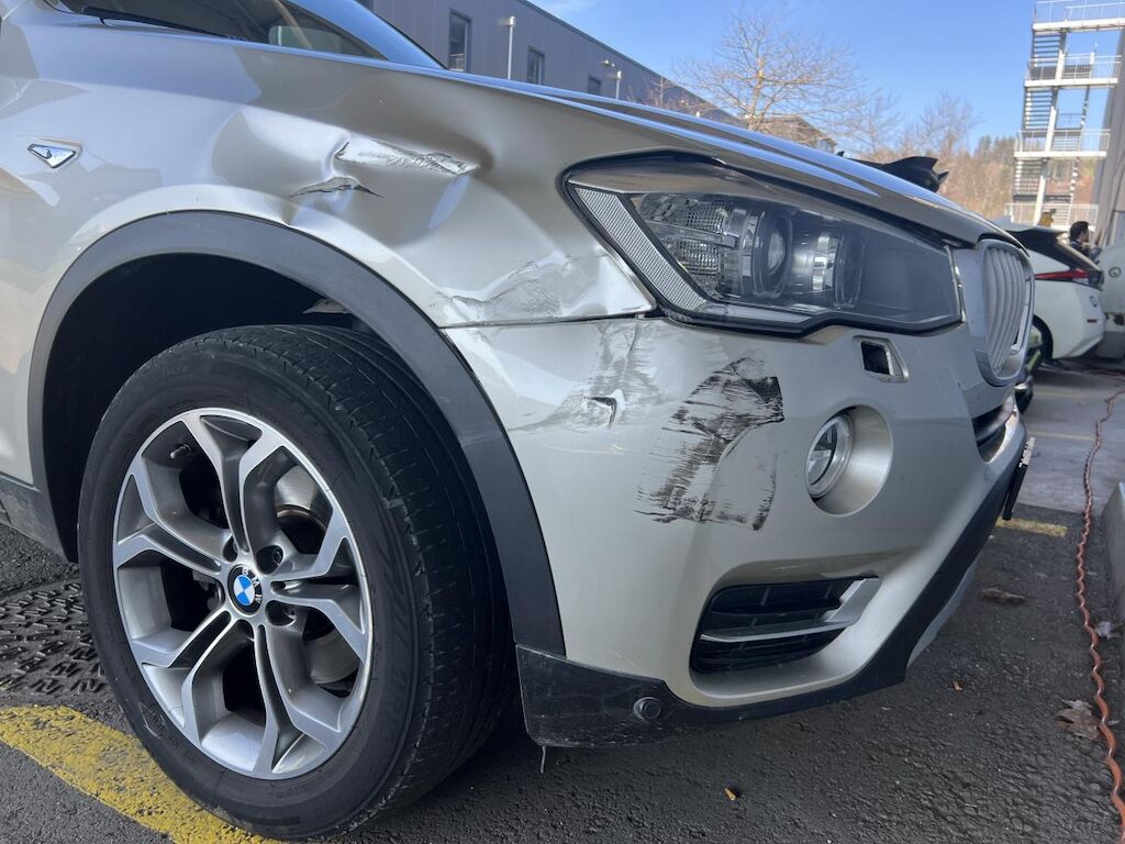 Anprall Front rechts Dabei wurde die Stossstange, der Kotflügel, der Scheinwerfer, der Radöauf und die Felge beschädigt. Motor Getriebe Vorderachse Hinterachse Airbags ausgelöst: 0 unbekannt ( Abfallcode 16.01.04ak )