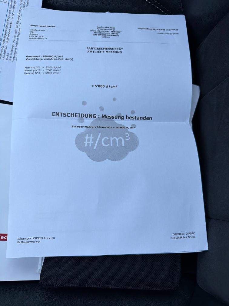 Dieselpartikelfiltertest wurde erfolgreich durchgeführt (Schriftlicher Ausdruck ist vorhanden).