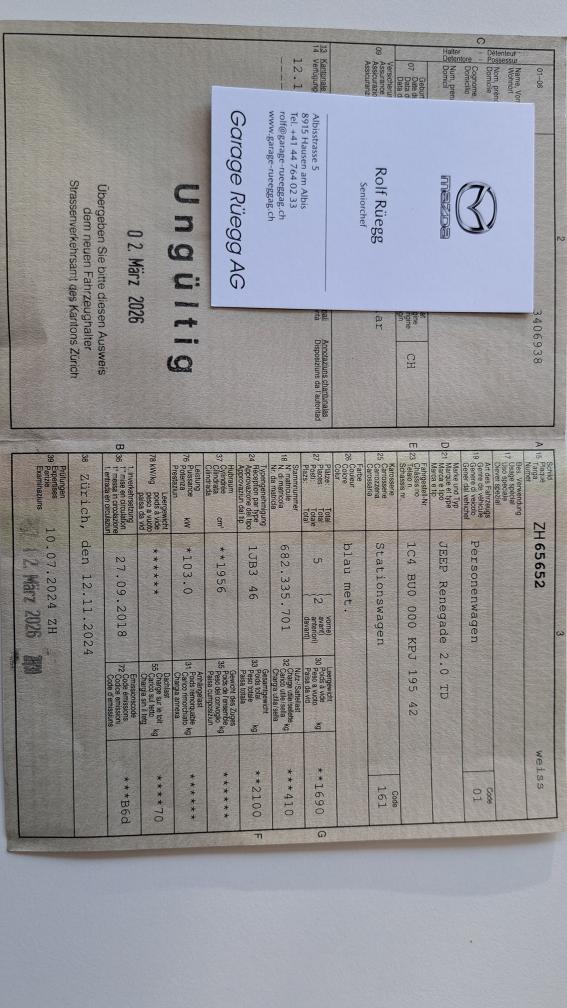 Ab MFK März 2026 Zürich Bremsen hinten neu Frontscheibe neu Auto sehr schön Verkauf ohne Garantie