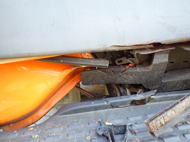 Bodengruppe verzogen/beschädigt. Unterboden stark verschmutzt.