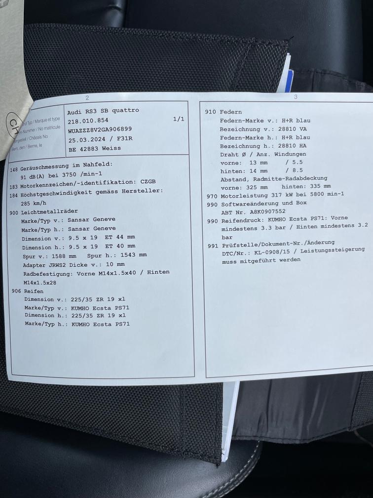 Sonderausstattung ABT mit Spezialfelgen Keine technische Prüfung gemacht