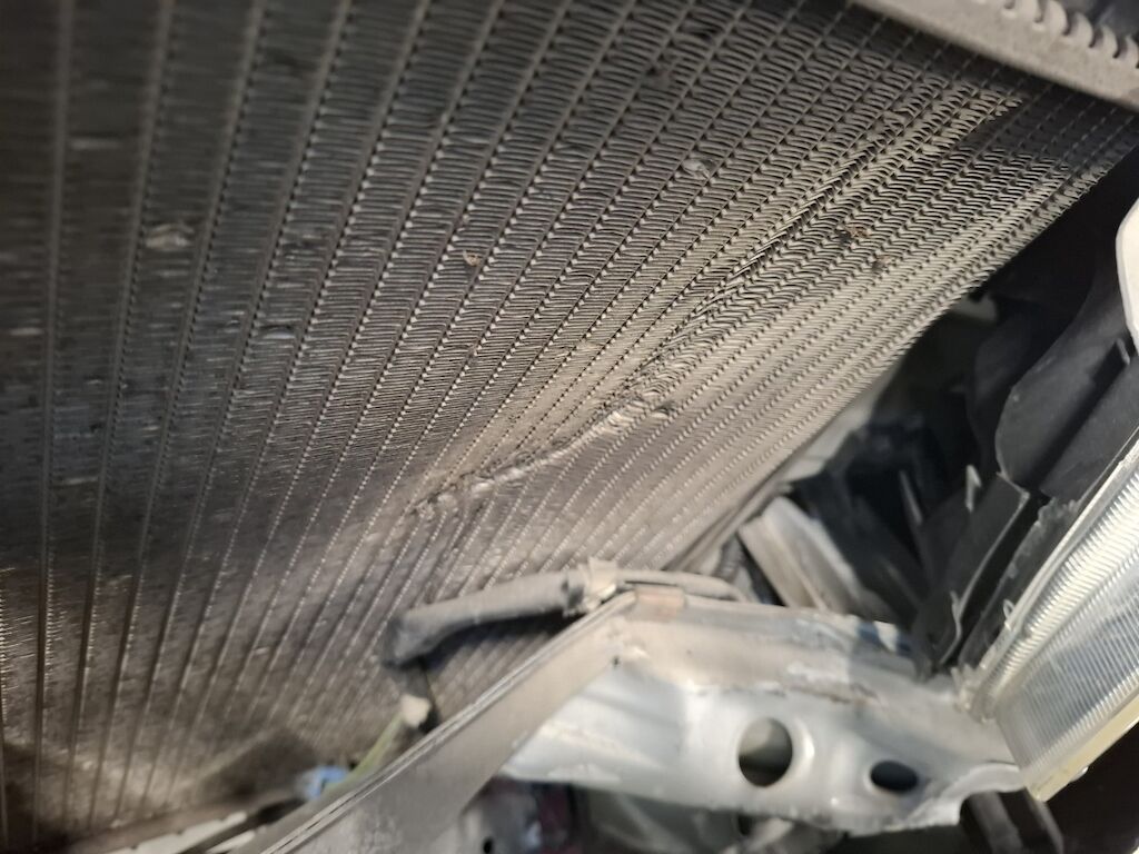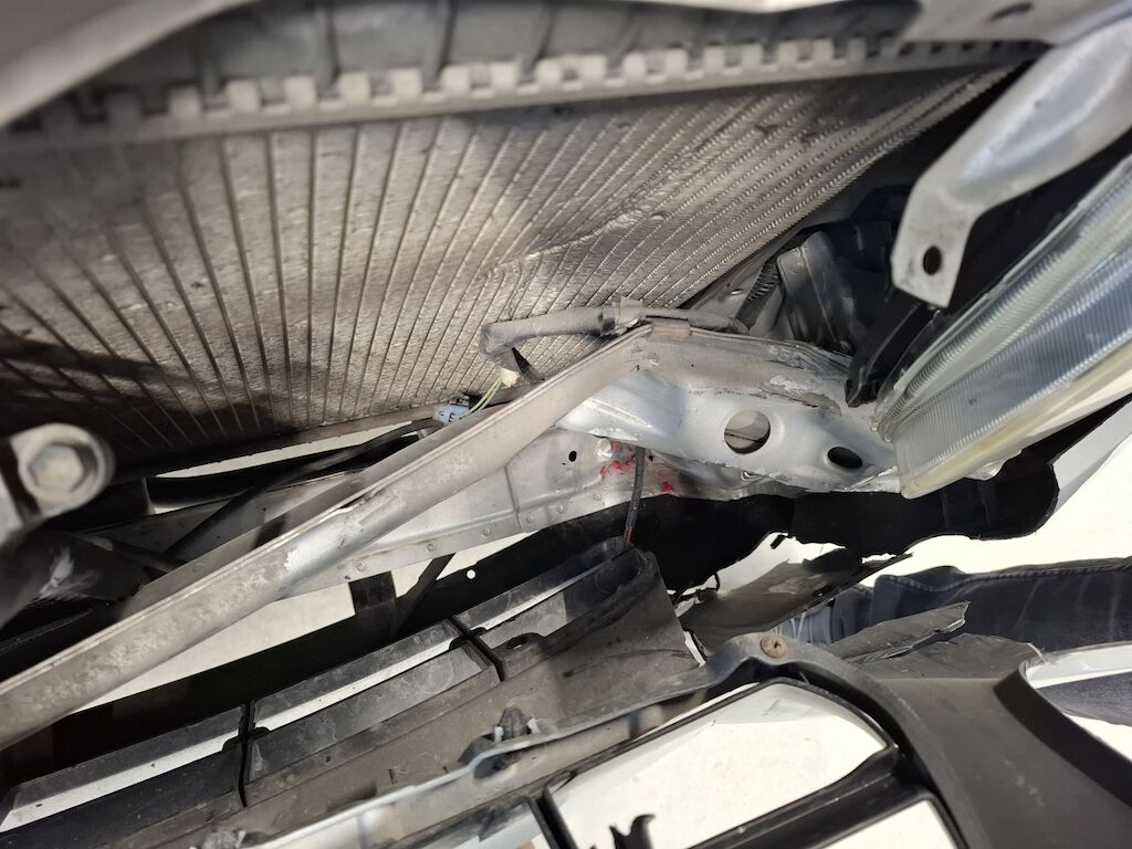 Dommage partie frontale: charnières serrure capot moteur tôle frontale traverse inférieure fortement pliés déformés emboutis enfoncés endommagés, phare enveloppe supports grilles garnitures de pare chocs cassés fissurés éclatés arrachés endommagés, radiateur de refroidissement condenseur de climatisation déformés percés endommagés. Motor Getriebe Vorderachse Hinterachse Airbags ausgelöst: 0 Nein ( Abfallcode 16.01.04ak )