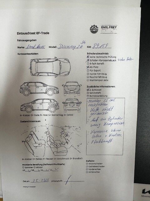 Das Fahrzeug hat auf ein Zylinder sehr wenig Kompression, wir mussten 5L Oel nachfühlen Motor Kette macht Geräusch. Wir Empfehlen das Fahrzeug nicht zu Fahren, besser Fz Aufladen 2X Schlüssel vorhanden Winter- Sommer Pneu Allgemeiner Zustand gemäss Bilder, ansonsten von unserer Seite, keine weiteren Technische Prüfung durchgeführt.