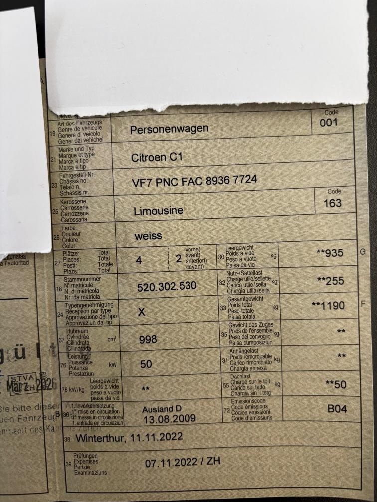 1. Inverkehrssetzung
