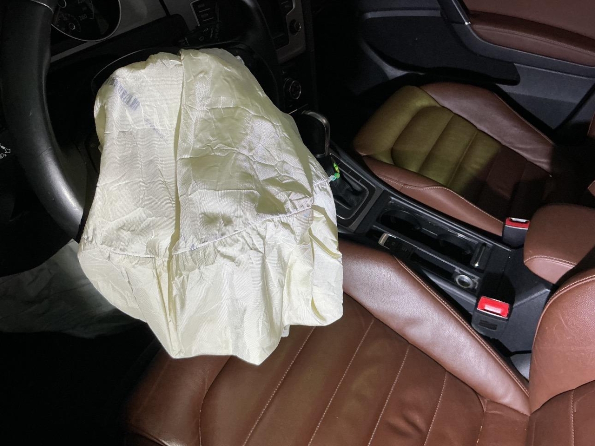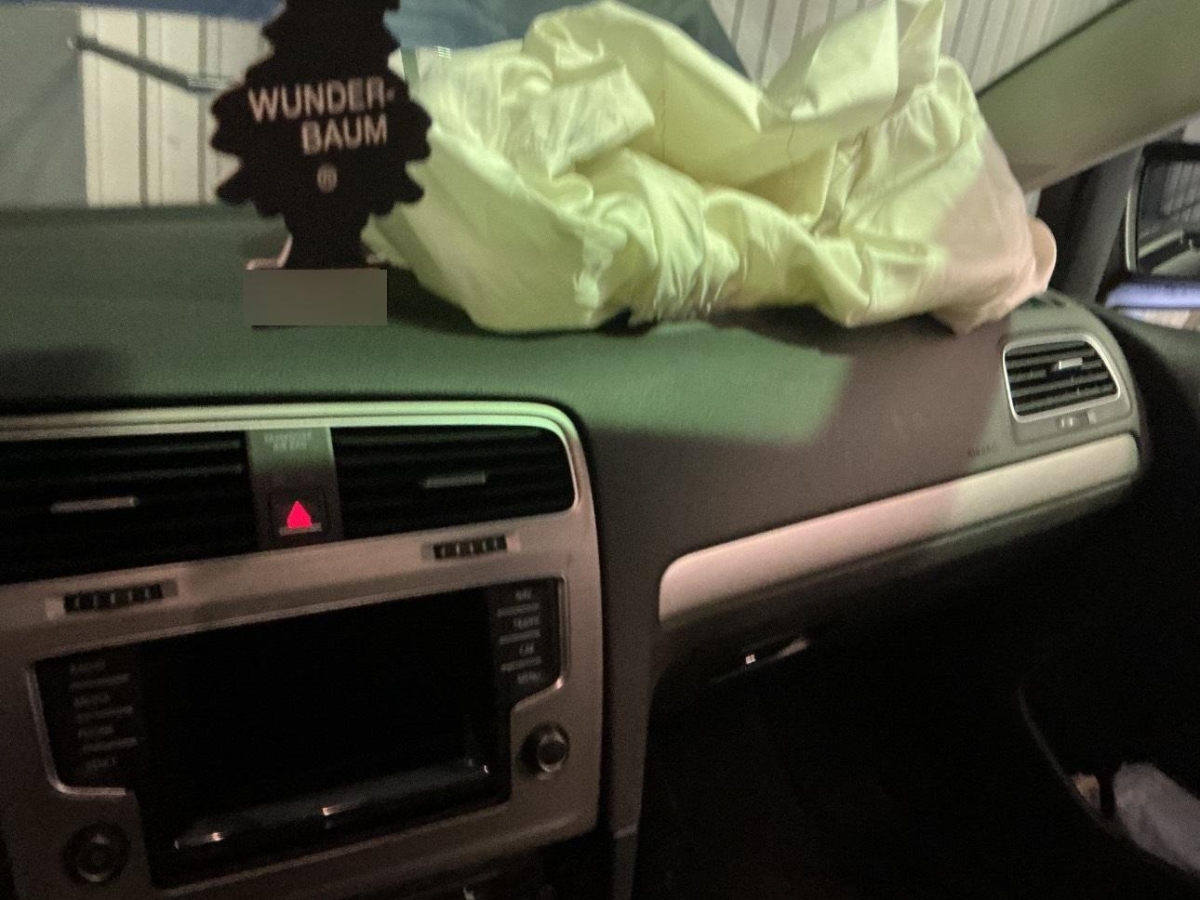 Airbag ausgelöst, Front, Frontscheibe, Rad vorne rechts, Radaufhängung vorne links, Radhaus vorne links, Seite links