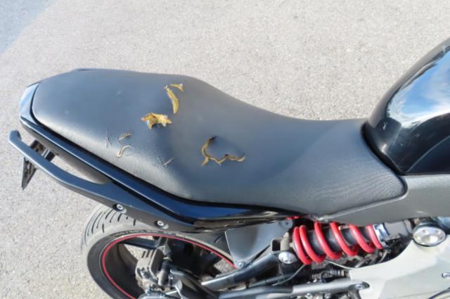 Kraftstofftank deformiert. Kraftstofftank Lackbeschädigung. Sitzpolster gerissen.