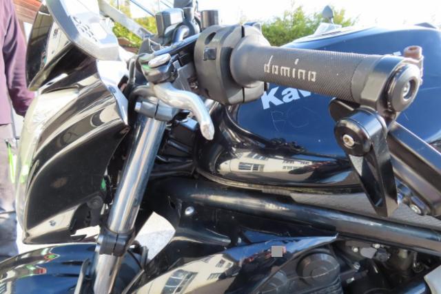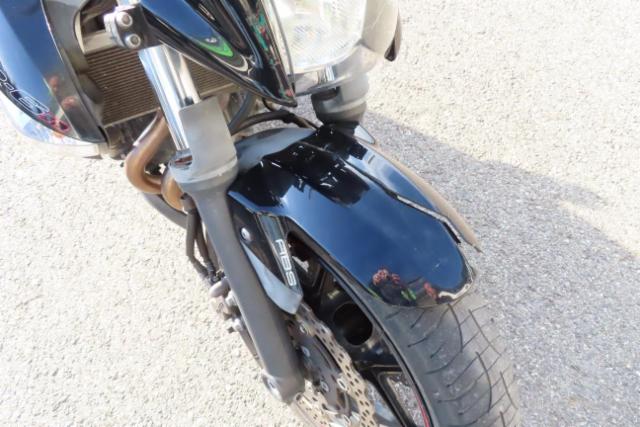 Schutzblech vorne defekt. Gabel beschädigt. Lenker verbogen.