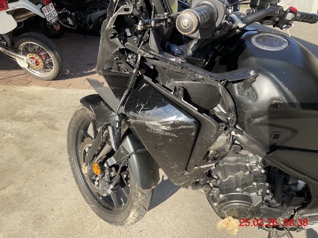 Beschreibung der Schäden: Linke Seite komplett beschädigt, Verschalung gebrochen, Scheinwerfer, Kupplungshebel, Lenk Rohr, Gabel VL, Tank, Windschutzscheibe zerkratzt, Motordeckel, Schalthebel, siehe Bilder. Zubehör wird evtl. demontiert!