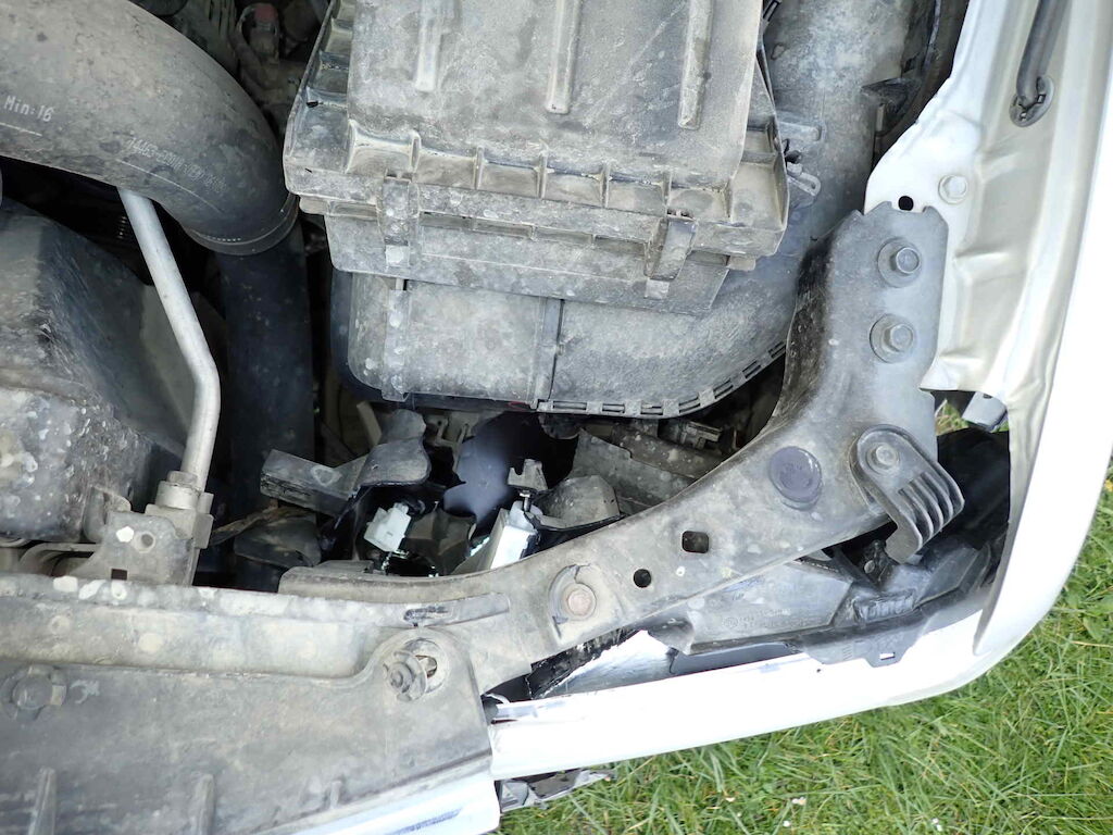 Pare-chocs AVG, phare AVG, calandre, aile AVG, choux d'aile AVG et susp. AVG endommagés