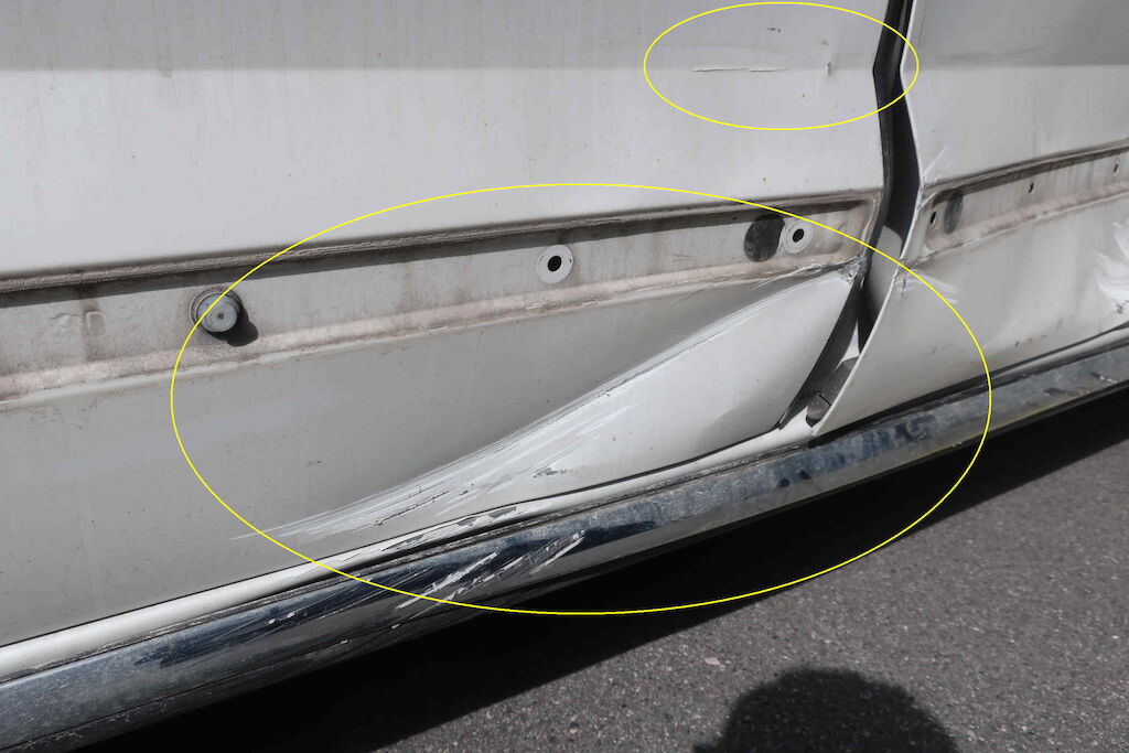 Div. Vorschäden:Seitenwand hi. re. beschädigtSchlussleuchte re. gerissenStossstange hi. beschädigtHeckklapppe deformiertSchlussleuchte li. beschädigtLackbeschädigung Stossstange & Kotflügel vo. li.Felgenrand vo. li. & re. beschädigtUnterfahrschutz vo. re. beschädigtStossstange vo. re. ausgehängt & KratzerLackbeschädigung & Delle MotorhaubeBremse vo. Eisen auf EisenElektrische Handbremse defektInnen sehr schmutzig