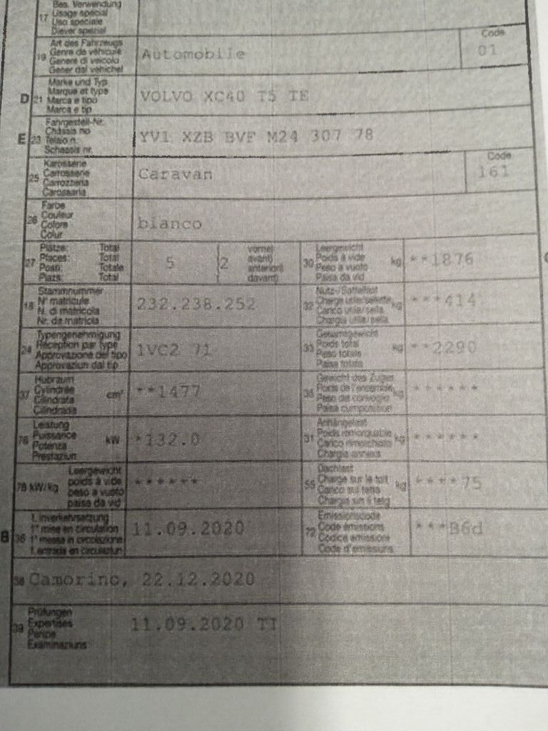 Non è stata effettuata alcuna ispezione tecnica (prova in officina) Piccoli danni alla carrozzeria/verniciatura dovuti all'usura Danno paraurti e portellone posteriore Danno paraurti anteriore DX Motor Getriebe Vorderachse Hinterachse Airbags ausgelöst: 0 Nein ( Abfallcode 16.01.04ak )