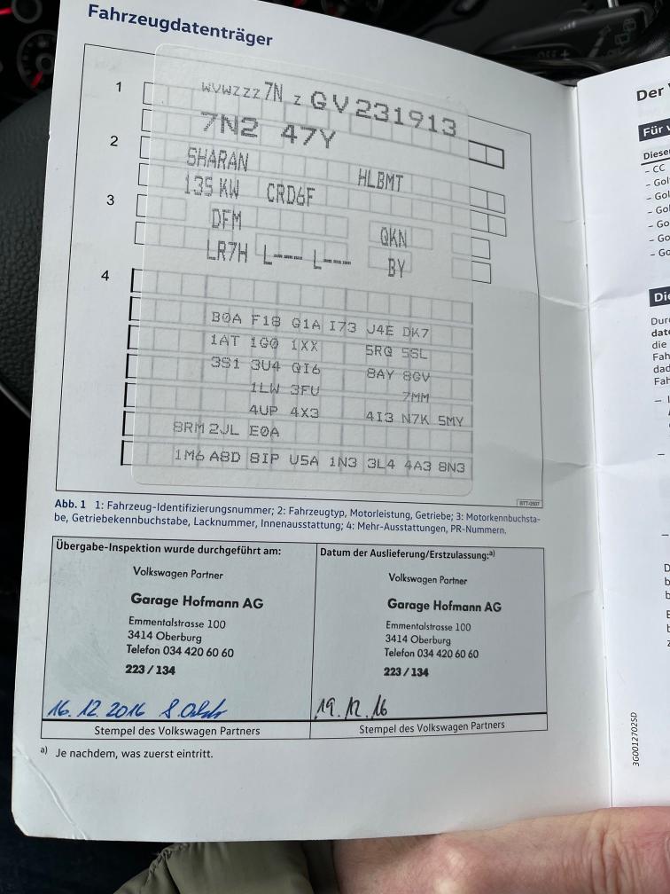 Fahrzeug hat Mechatronic Schaden. Wird mit Sommer und Winterräder übergeben. Immer bei VW Garage. 7-Sitzer AHK Pano etc. Highline Ausführung. Am Fahrzeug wurde kein Werkstatttest gemacht (Für sichtbare oder nicht sichtbare Mängel wird nicht gehaftet). Wir testen & kontrollieren nicht alle Funktionen des Fahrzeugs. Das Risiko liegt somit vollumfänglich beim Käufer. Nachdem der Höchstbietende den Zuschlag erhalten hat, gibt es keine Nachverhandlung, auch wenn nicht deklarierte Mängel zum Vorschein kommen sollten. Ab Platz ohne Garantie, Wandelung und Minderung werden wegbedungen.