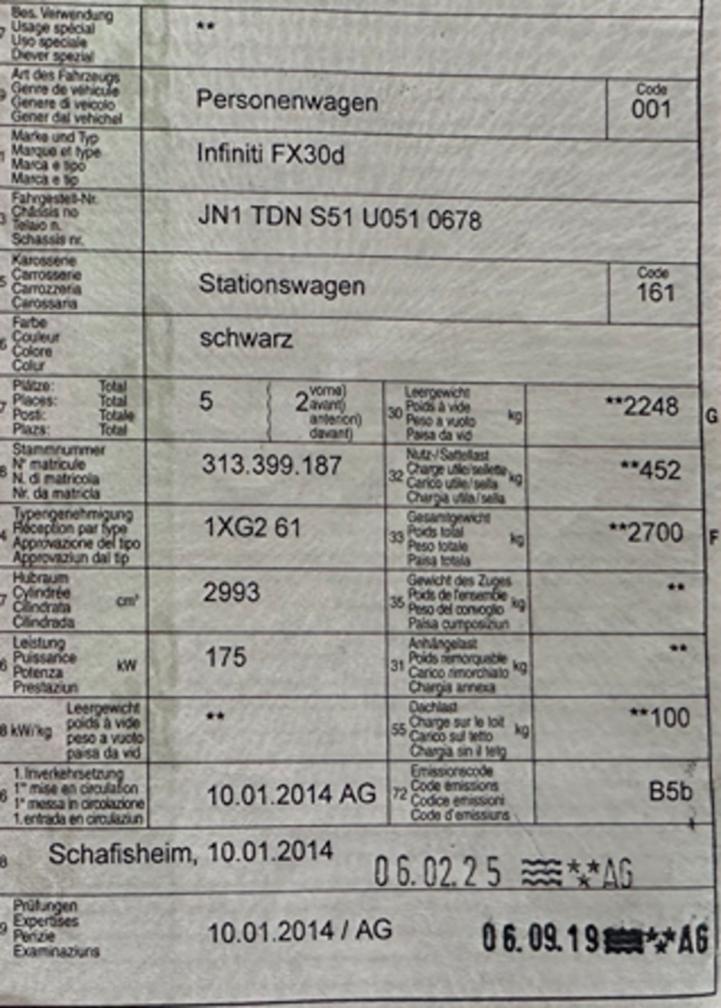 Fahrzeug befindet sich um Kundenbesitz, deshalb keine technische Prüfung.