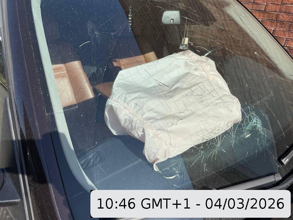 Achsträger, Airbag ausgelöst, Armaturenbrett, Federbein vorne rechts, Front, Front rechts, Frontblech, Frontscheibe, Gurtstraffer ausgelöst, Kabelstrang, Kopfstützen ausgelöst, Lenkung, Rad vorne rechts, Radaufhängung vorne rechts, Radhaus vorne rechts, Scheinwerfer rechts, Stosstange vorne, Vorderachse