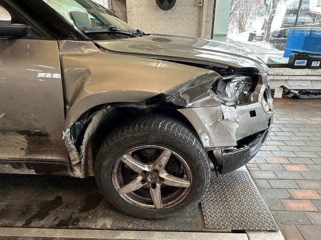 Front rechts eingedrückt. Frontblech/Maskenblech eingedrückt. Radhaus vorne rechts eingedrückt / gestaucht.
