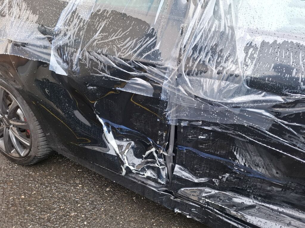 Türe vorne und hinten, Schweller, A-Säule, B-Säule und Seitenwand eingedrückt. Gurtraffe, Seitenairbag rechts und Kopfairbag rechts ausgelöst. Motor Getriebe Vorderachse Hinterachse Airbags ausgelöst: 2 Nein ( Abfallcode 16.01.04ak )