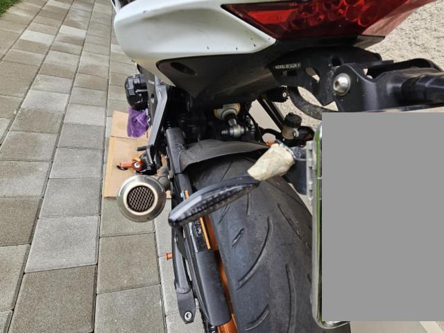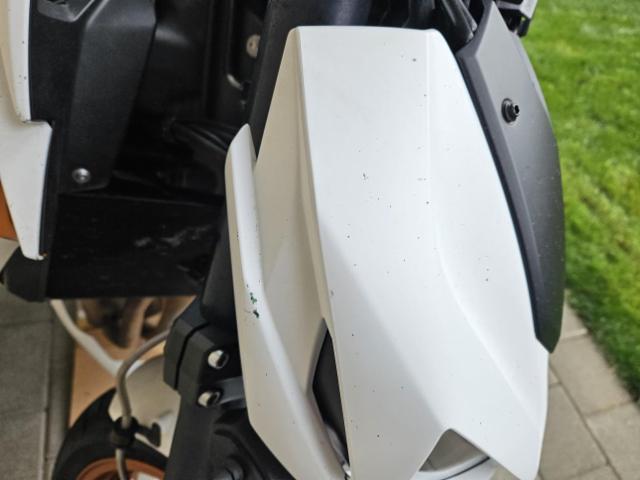 Linke Seite beschädigt. Ist auf die linke Seite gefallen. Verschalung oben links gebrochen. Verschalung unten links verkratzt. Verschalung hinten links verkratzt.