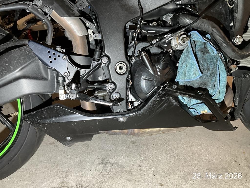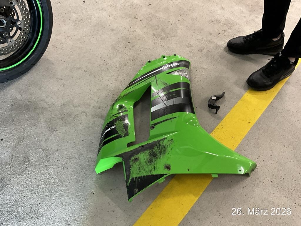 Seite rechts zerkratzt, Rahmen beschädigt / Vorbestandene Schäden: Motorschaden nach Kollision