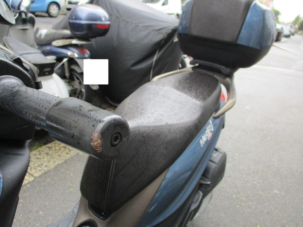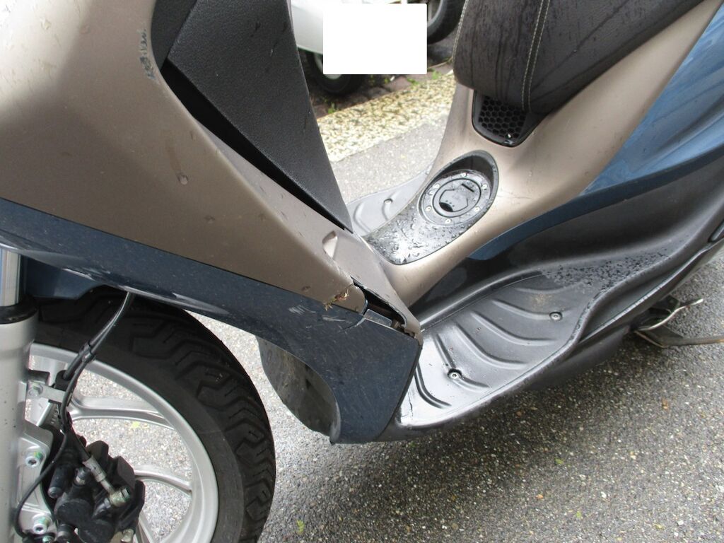 Der Roller weist Schäden an der Seite links auf. Der Kotflügel vorne ist gestaucht. Die Seitenverschalung VL, das Trittbrett, der Rückspiegel L und die Fussraster sind angeschürft. Das Top-Case ist zerkratzt. Motor Getriebe Vorderachse Hinterachse Airbags ausgelöst: 0 unbekannt ( Abfallcode 16.01.04ak )